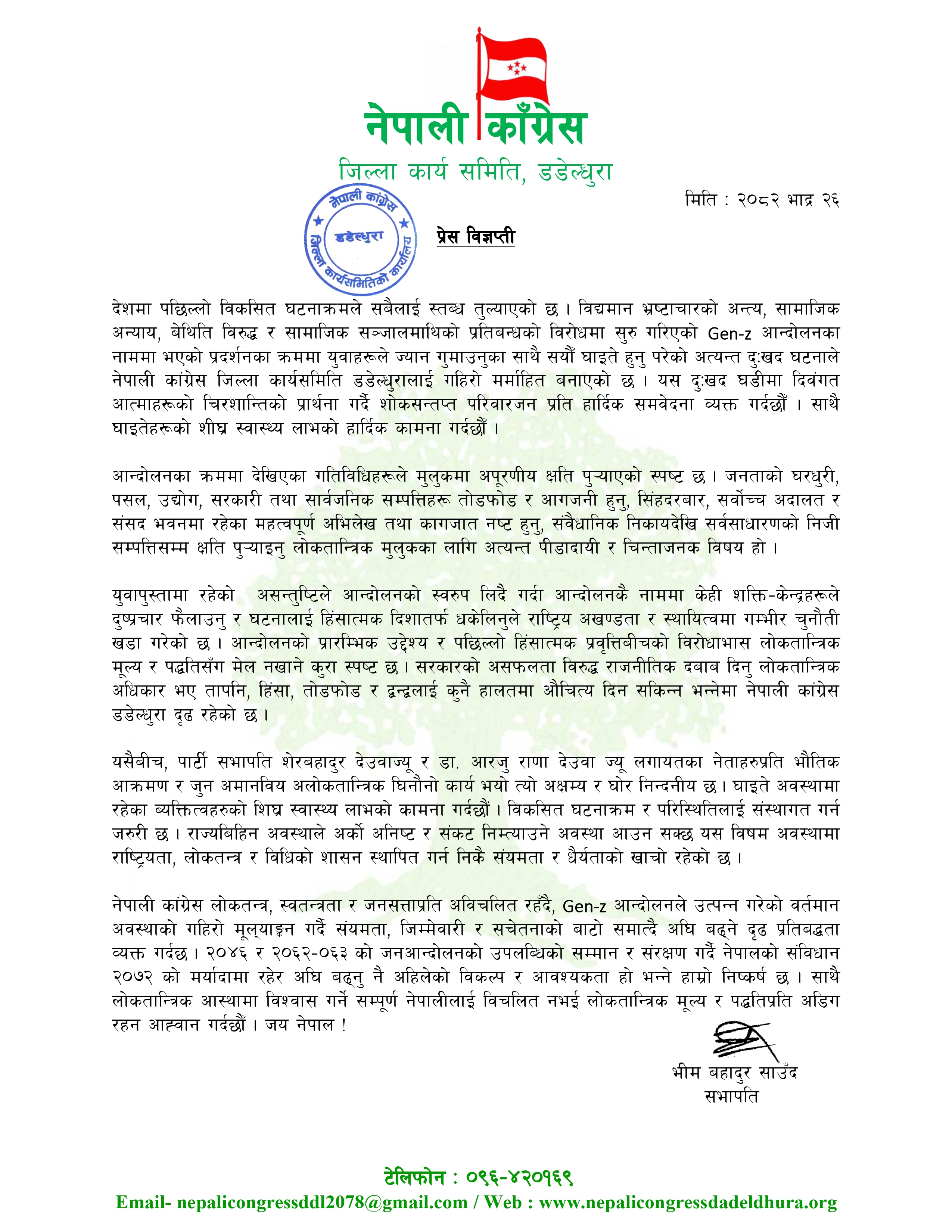 नेपाली काँग्रेस डडेल्धुराको वेभ साईट शुभारम्भ कार्यक्रम